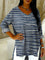 Denim Blue Striped Decorative Pattern Women's Casual V Neck Collar Shirt