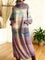 Women's Retro Colors And Plaid Patterns Art High-neck Long-sleeve Casual Loose Knit Dress