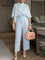 Women's Solid Color Stand-collar Three-quarter Sleeve Casual Loose Cotton And Linen Cardigan And High-waisted Wide-leg Pants Set