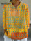Women's Vintage Abstract Geometry ArtPrint Casual Cotton And Linen 3/4 Sleeve Shirt