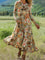 Women's Vintage Flower Art Print Long-sleeved Dress
