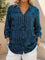Women's Vintage Pattern Print Casual Ruffled Denim Shirt