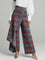 Women's Vintage Plaid Patterns Print High-waisted Relaxed Fit Wide-leg Jeans With A Stylish Design