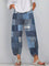 Women's Vintage Splicing Pattern Art Prints Casual Denim Cotton Pants $49.99