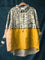Women's Yellow Color-blocked Dots Print Casual Cotton And Linen Shirt