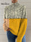 Yellow Color-blocked Dots Print Knit Turtleneck Pullover Sweater