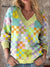 Beautiful Colorful Plaid Painting Art Print Knit V-neck Pullover Sweater