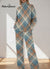 Casual Plaid Decorative Pattern Casual Stand Collar Long Sleeve Top And Casual Long Pants