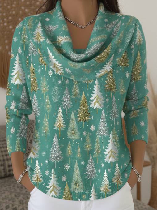 Dreamy Blue Cedar Print Turtleneck Sweater Top