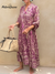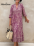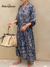 Elegant Shiny Floral Print V-neck Midi Cotton Dress