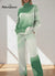 Retro Gradient Light Green Printed Casual High-neck Top And Straight-leg Pants Set