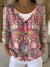 Vintage Boho Art Print Buttoned V-neck Cardigan Sweater