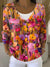 Vintage Flower Art Print Buttoned V-neck Cardigan Sweater