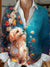 Vintage Flower Cute Dog Art Print Buttoned V-neck Cardigan Sweater