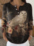 Vintage Owl Art Print Buttoned Cardigan Sweater