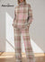 Vintage Pink Plaid Pattern Casual Stand Collar Long Sleeve Top And Pants