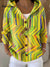 Women's Abstract Geometric Painting Art Print Casual Hooded Button Sweater