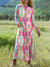 Women's Beautiful Colorful Floral Geometric Stripe Art Print Long-sleeved Dress