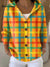 Women's Beautiful Colorful Line Checkered Painting Art Print Casual Hooded Button Sweater