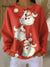 Women's Christmas Santa Pattern Art Print Casual Cotton Waffle Sweatshirt