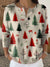 Women's Christmas Tree Art Print Buttoned Cardigan Sweater