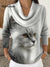 Women's Cute Cat Pattern Art Print Casual Cowl Neck Sweater