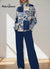 Women's Floral Pattern Art Print Casual Knitted Cotton Top Pants Suit