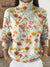 Women's Floral Pattern Art Print Knit Turtleneck Pullover Sweater