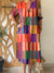 Women's Geometric Print V-Neck 3/4 Sleeve Casual Loose Cotton and Linen Dress