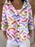 Women's Multi-Color Mixed Irregular Strips Printed Casual Hooded Button Sweater