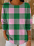 Women's Multicolor Plaid Painting Art Print Casual Pullover Sweater