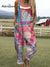 Women's Patchwork Floral Art Print Casual 100% Cotton Wide Leg Jumpsuit
