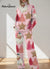 Women's Retro Christmas Santa Art Print Casual Knit Set