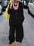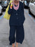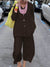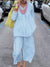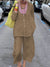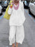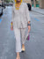 Women's Solid Color V-Neck Long Sleeve Casual Cotton and Linen Top Elastic Waist Casual Cotton and Linen Cropped Wide-Leg Pants Set