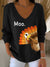 Women's Thanksgiving Turkey Moo Print Knit Top