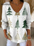 Women's Vintage Christmas Art Print Casual Pullover Sweater