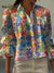 Women's Vintage Flower Art Print Casual Cotton And Linen Shirt