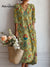 Women's Vintage Flower Art Print Linen Pocket Dress