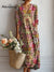 Women's Vintage Flower Art Print Linen Pocket Tunic Dress