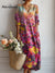 Women's Vintage Flower Art Print Linen Pocket Tunic Dress