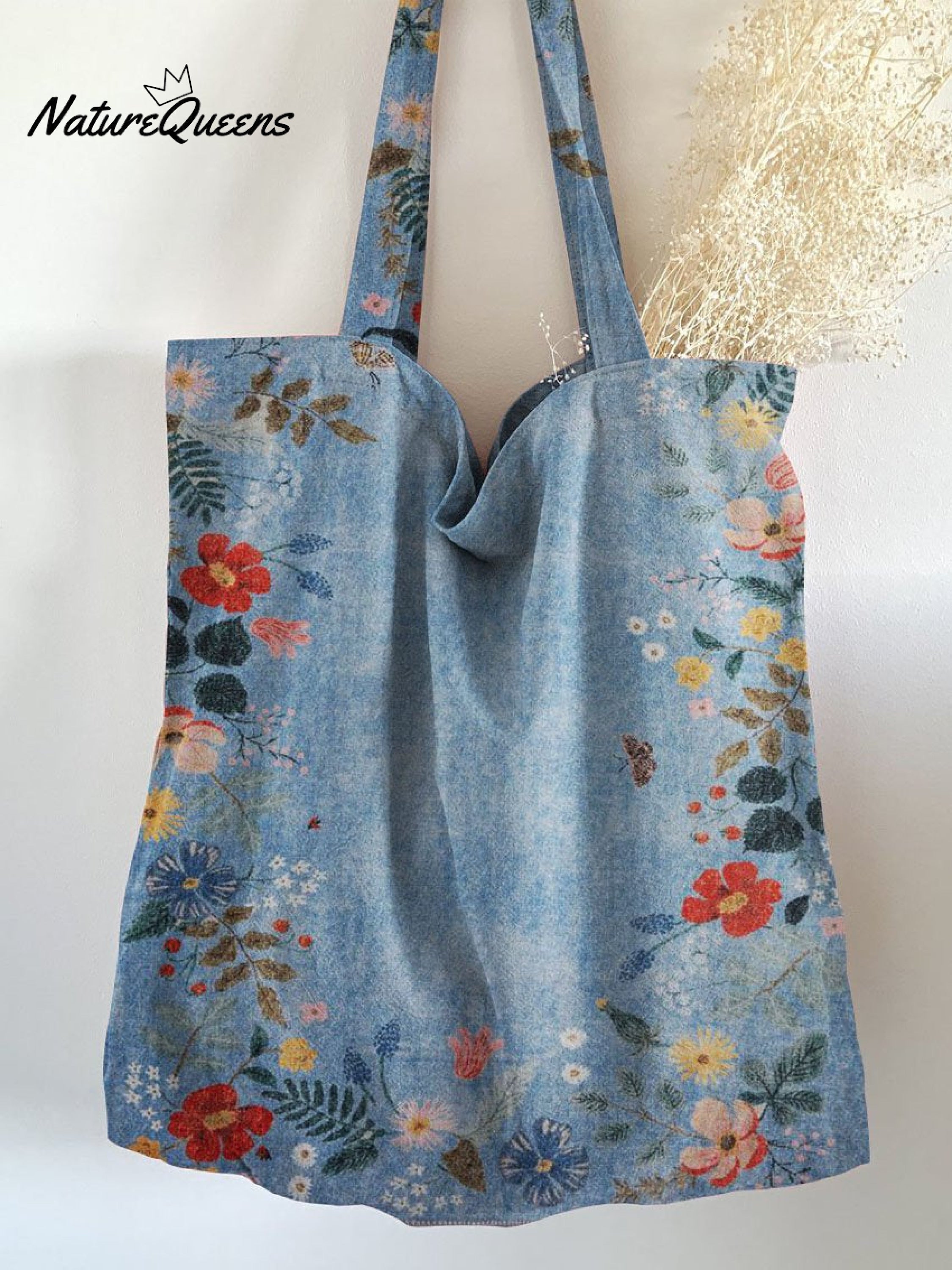 Retro Floral Art Print Linen Tote Bag