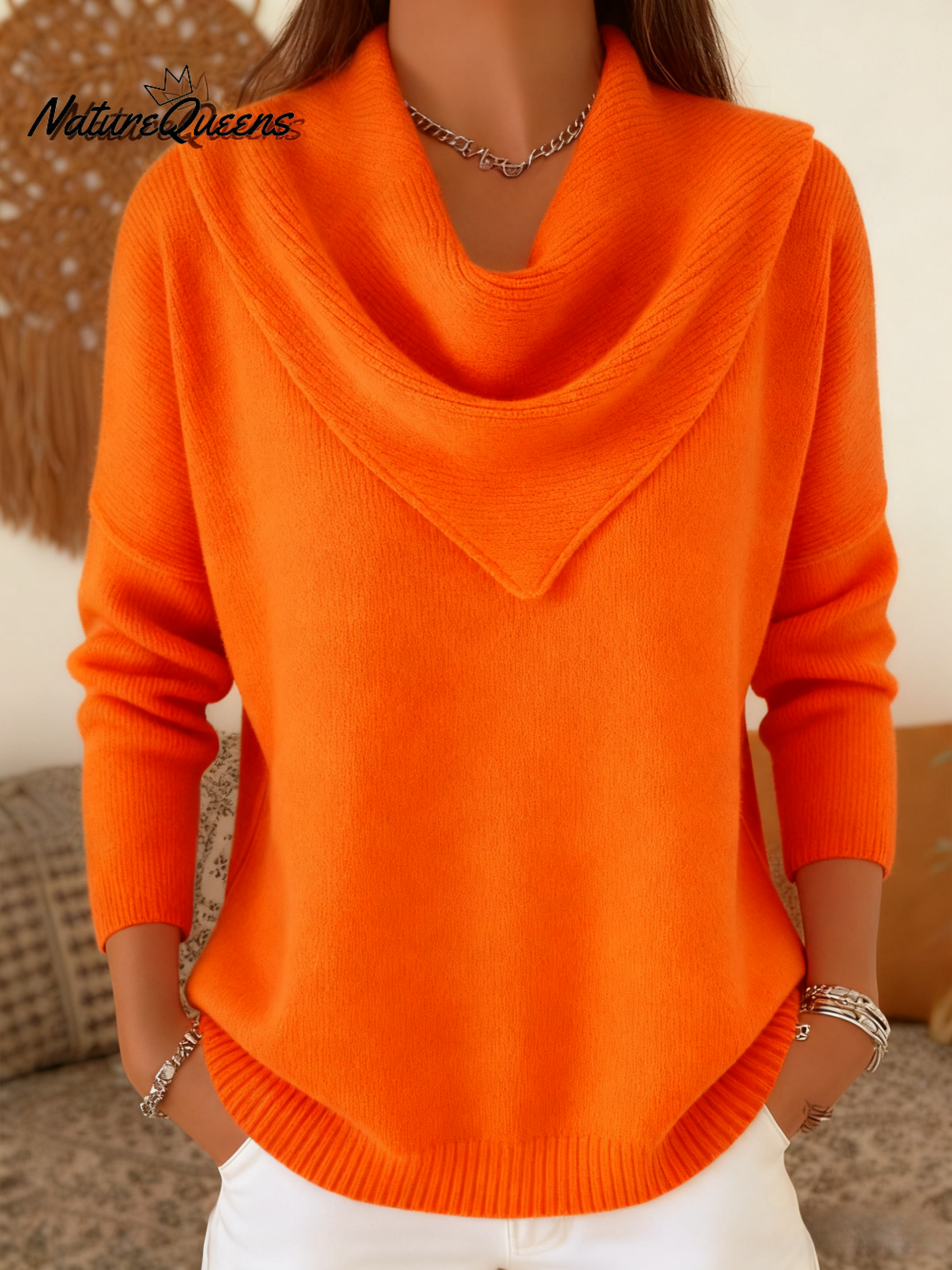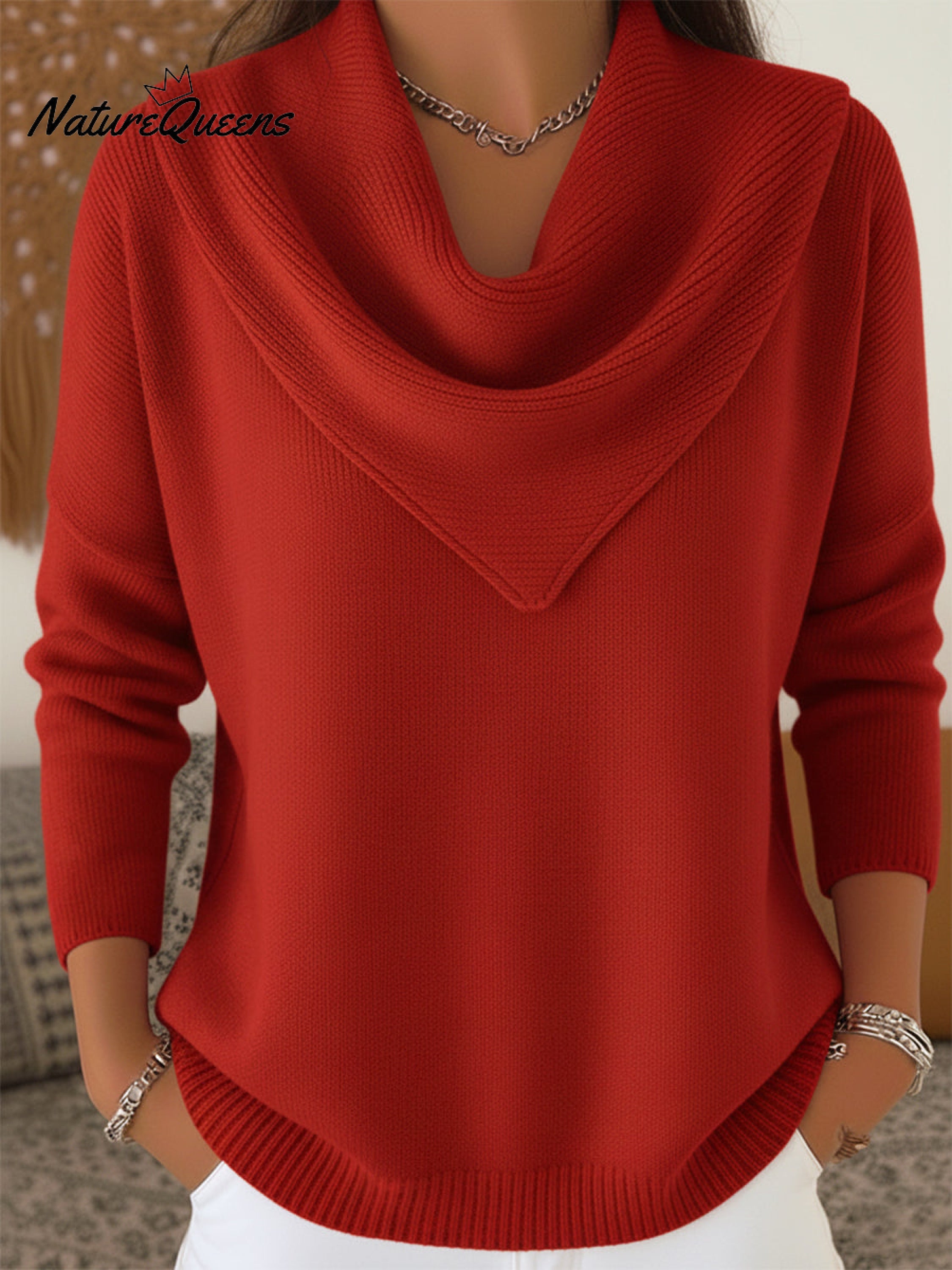 Elegant Retro Soft Triangle Neck Solid Color Sweater Top