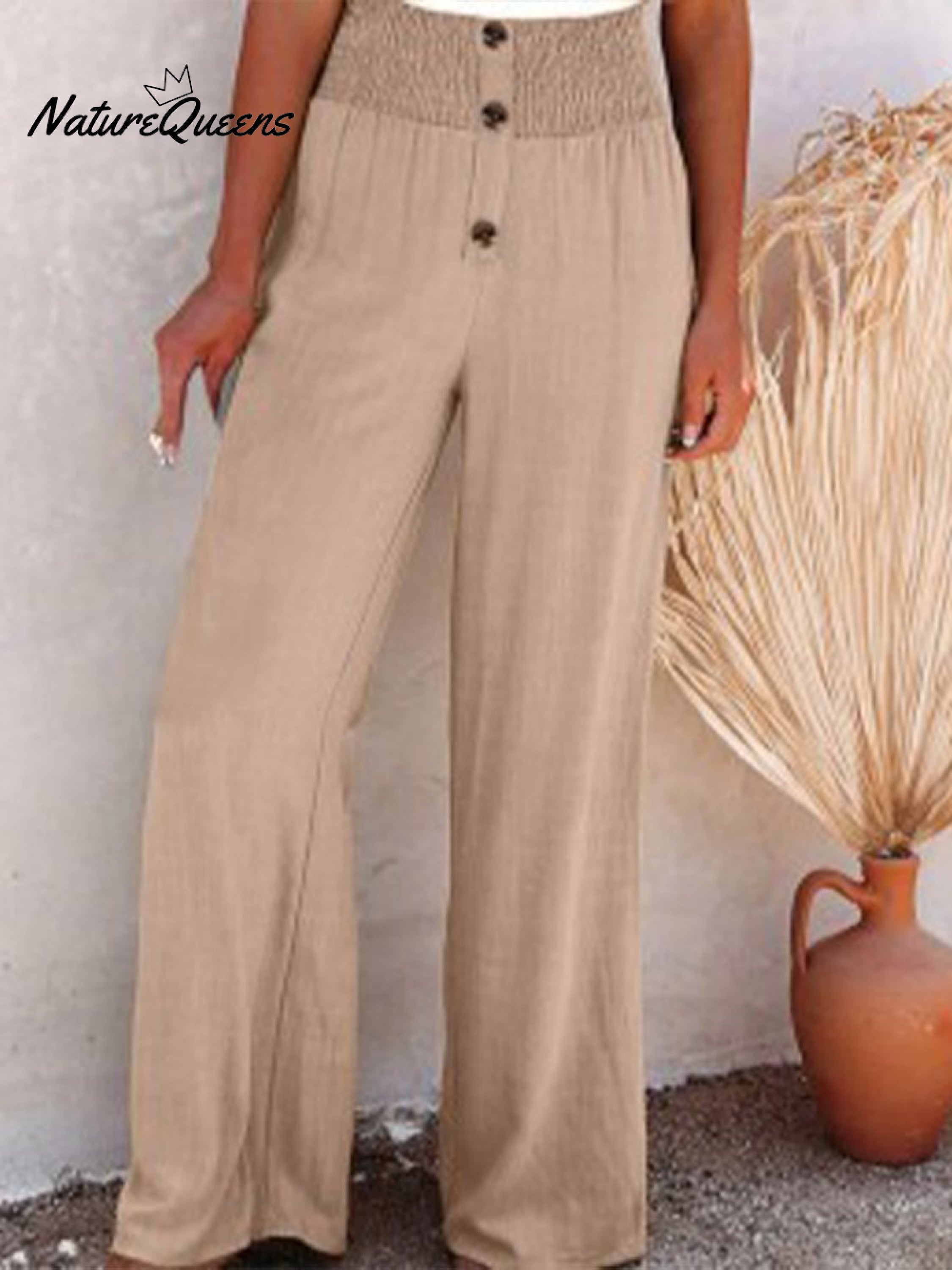 Hemp Elasticated Loose Casual Wide-leg Women's Trousers
