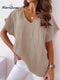 Ladies Solid Color V-Neck Casual 3/4 Sleeves Long Cotton and Linen Dress