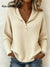 Women's Solid Color Draped Neck 3/4 Sleeve Comfortable Casual Linen Pocket Top