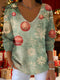Women's Christmas Trees Gradient Snowflake Pattern Art Print V-neck Solid Color Loose Shiny Sweater