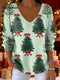 Women's Christmas Trees Gradient Snowflake Pattern Art Print V-neck Solid Color Loose Shiny Sweater