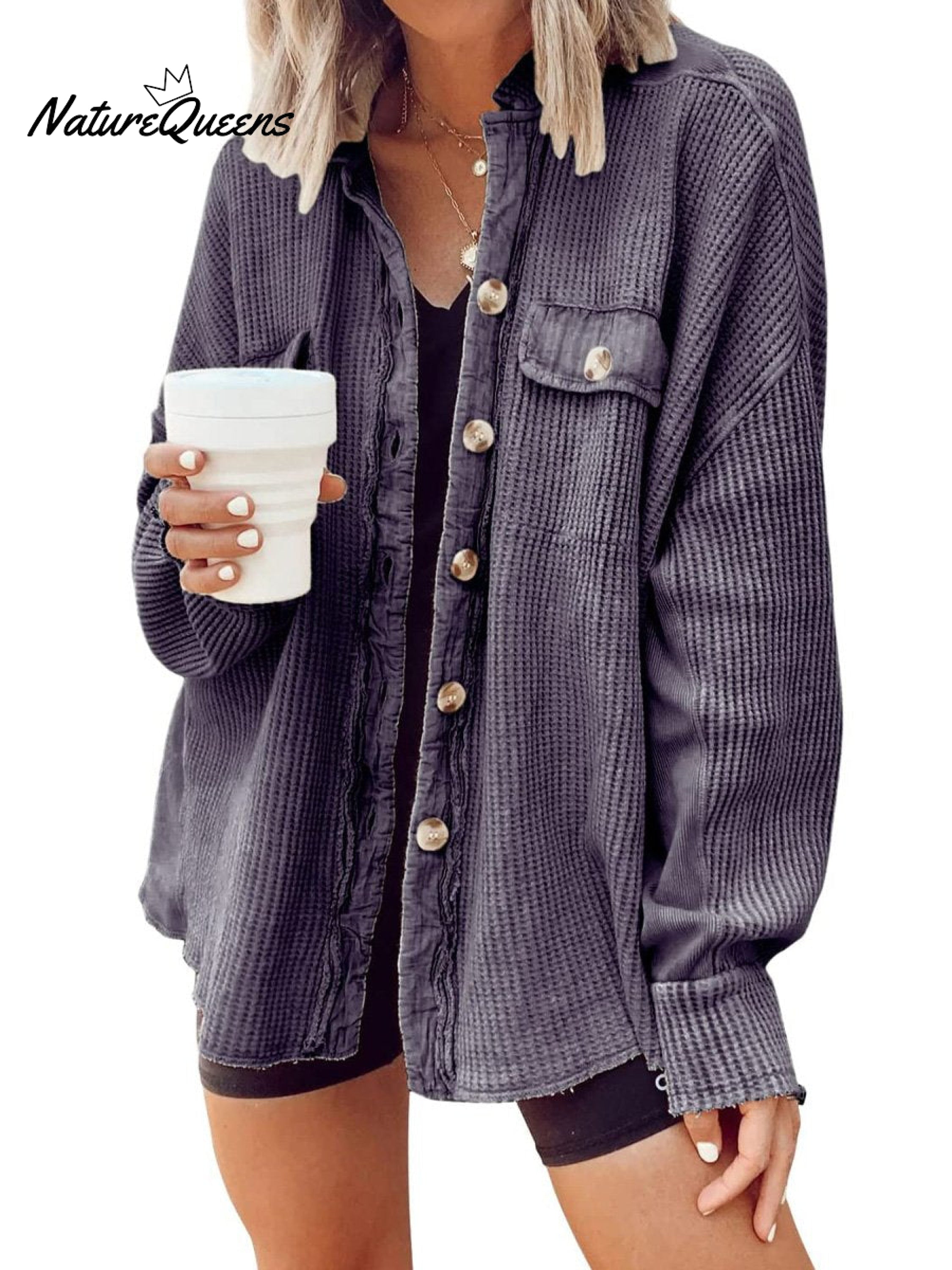 Women's Fall Casual Lapel Neck Patchwork Irregular Shirt Jacket