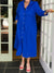 Women's Solid Color Collared Long-sleeved Casual Pleated Loose Cotton Dress