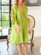 Women's Solid Color Lapel Long-sleeved Casual Loose Cotton And Linen Shirt Dress